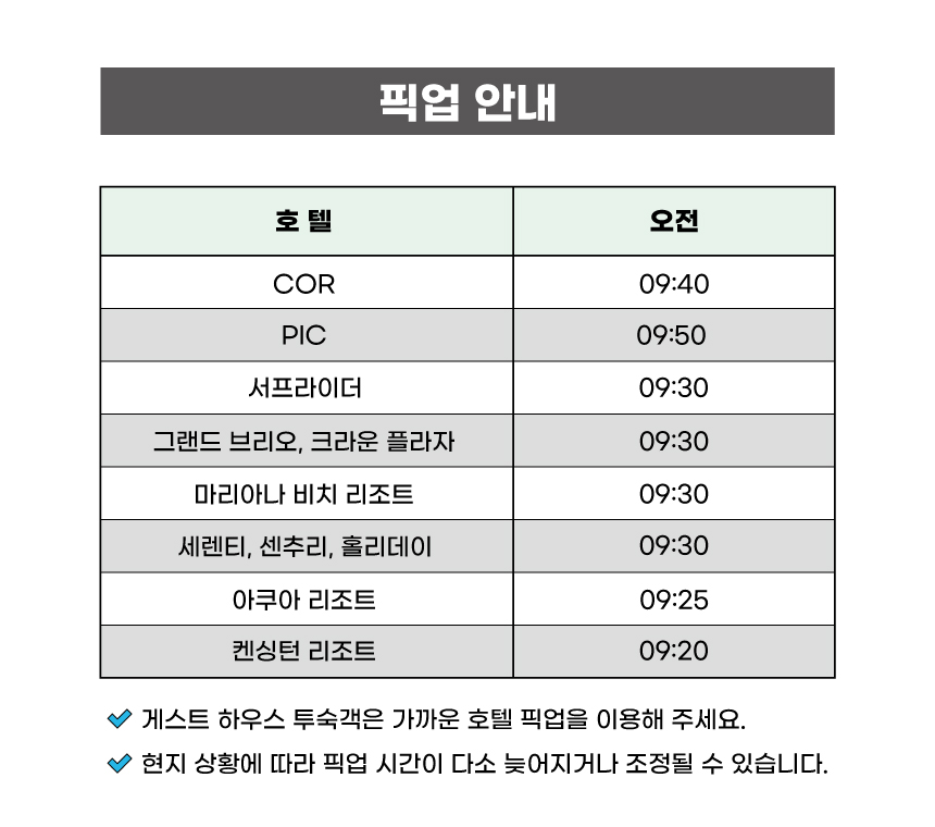 ✔️ 호텔 픽업 & 드랍 옵션 선택 가능