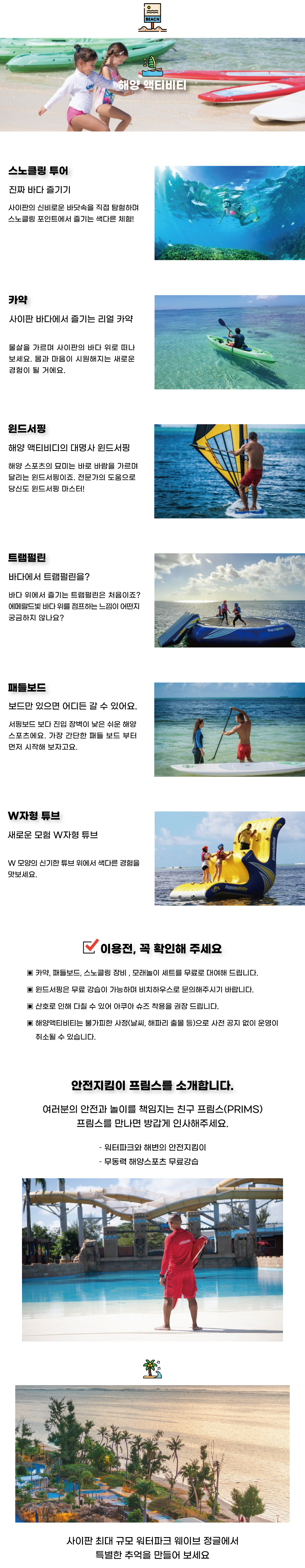 ➡️ 웨이브 정글 뿐만 아니라 월드 리조트 전용 해변에서 즐기는 무동력 해양 액티비티까지 함께 즐겨요!