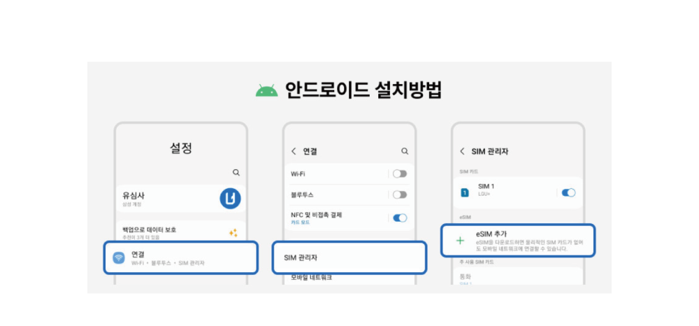 ➡️ 유심칩처럼 핸드폰 케이스를 빼고 유심을 교체할 필요가 없이 설정에서 사용 가능해요!