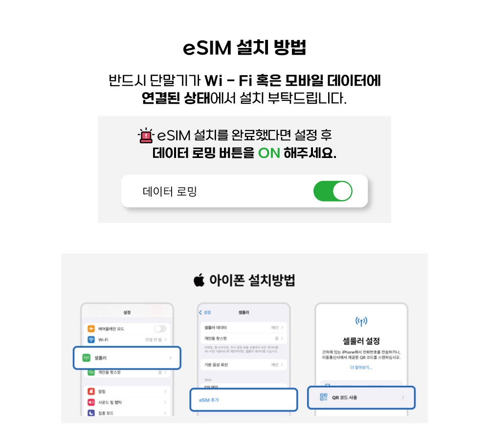 ➡️ 유심칩처럼 핸드폰 케이스를 빼고 유심을 교체할 필요가 없이 설정에서 사용 가능해요!