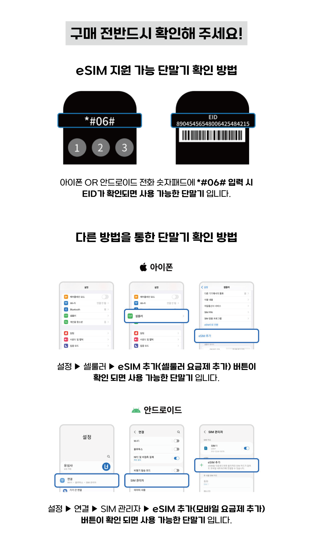➡️ 유심칩처럼 핸드폰 케이스를 빼고 유심을 교체할 필요가 없이 설정에서 사용 가능해요!