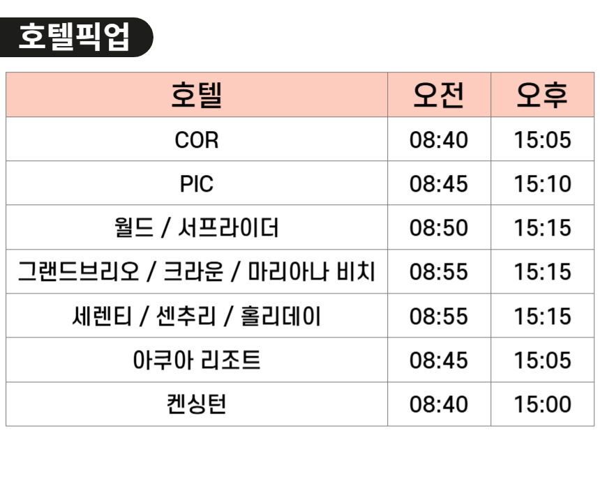 ✔️ 호텔 픽업 & 드랍 가능🚐